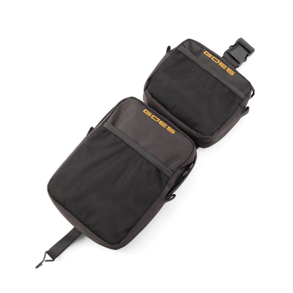 Praktická dvoudílná brašna na doklady, telefon a jiné drobnosti instalovaná na blatník čtyřkolky. Tato brašna je navržena primárně pro GOES Terrox 1000, který má na nosiči očko pro rychlé uchycení, lze ji ale použít i na jiné typy čtyřkolek, kde je potřeba upevnění vyřešit individuálně. - Materiál: polyesterová tkanina Oxford 900D Oxford - Povrch odolný vodě a prachu - Každá brašna obsahuje dvě samostatné kapsy uvnitř a síťku na vnější straně - Zavírání na zip