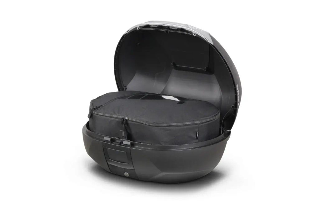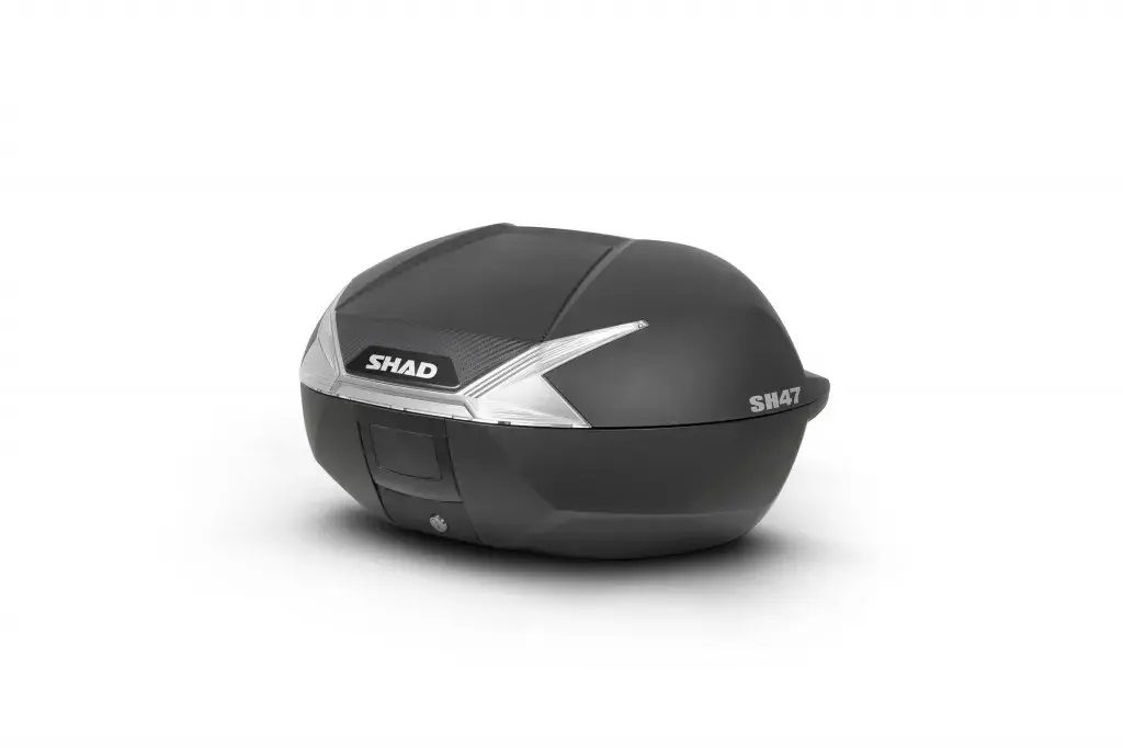 SH47 je špičkový kufr navržený v Barceloně a postavený na agresivním aerodynamickém tvaru. Má moderní a elegantní vzhled. Jeho velikost je ideální pro pohyb po městě nebo pro delší jízdy, což umožňuje jeho přizpůsobení jak na skútry, tak na střední a velké motocykly.