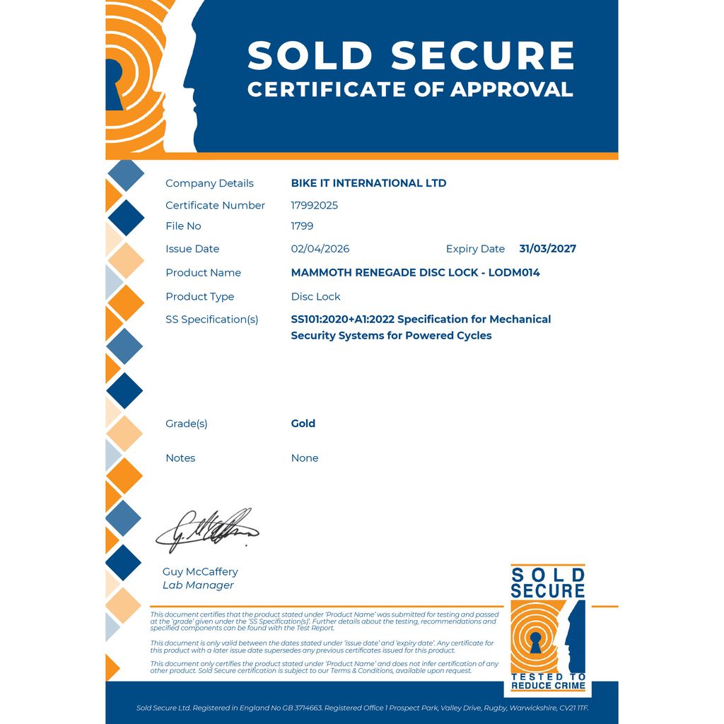 Mammoth Security Renegade zámek na kotouč 13mm fluo žlutá "Sold Secure Gold Approved"